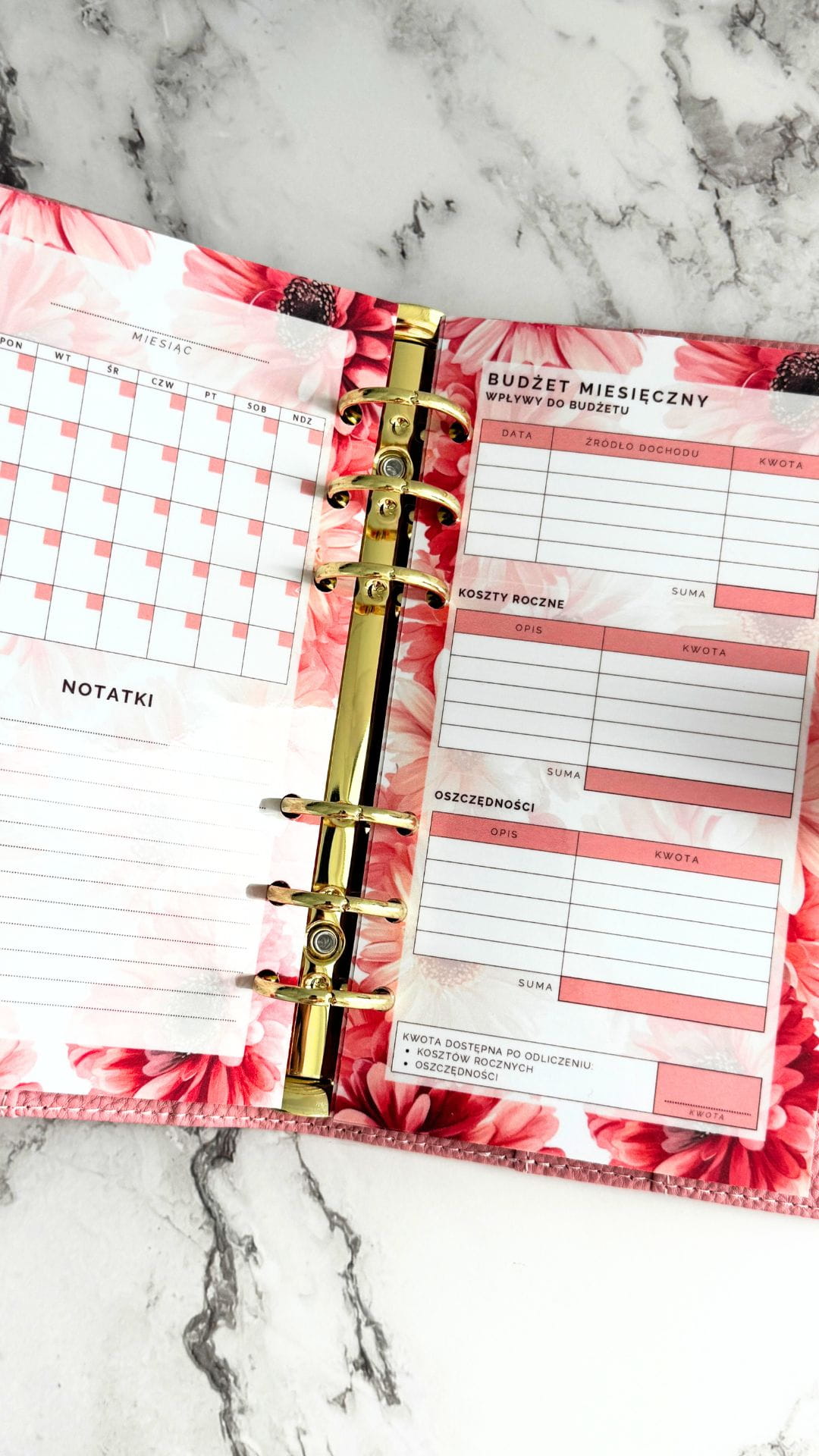 Planer Finansowy Wpinany - Różowa Gerbera